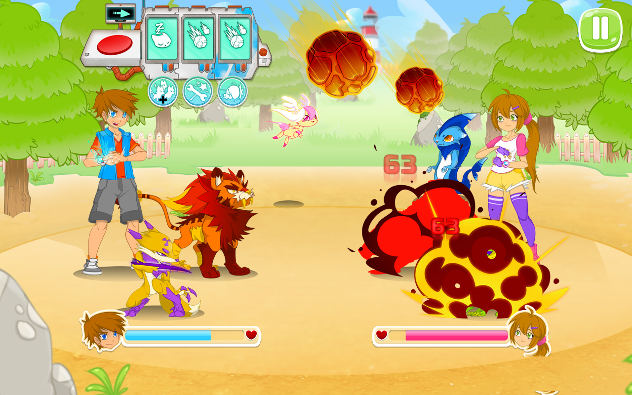 Lead your team of tiny monsters in the battle arena. Train your mini creatures, and upgrade their fighting skills. You can use powerful magical skills to defeat the opponent team members. Explore the exciting world of Animalon. A curious land where magical animals fight against each other for the glory of their masters. On each level, you must imagine a strategy plan to win the most challenging battles Try to create the strongest monsters to become an invincible team of epic warriors.